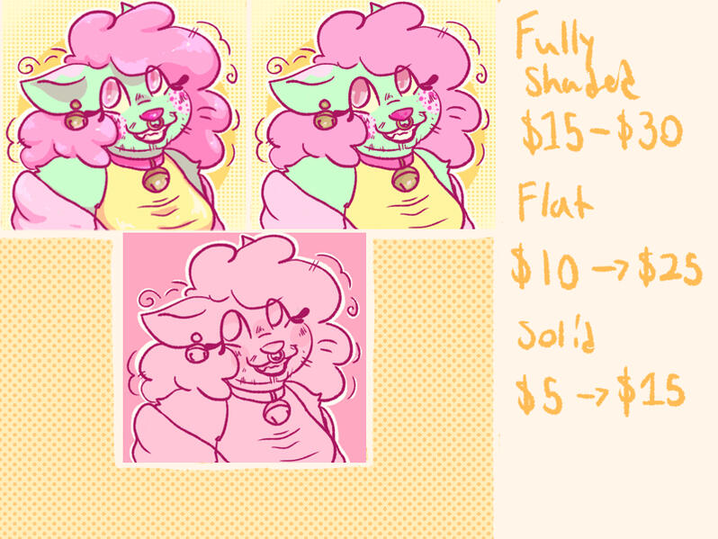 $15 headshot, $20 half, $30 fullFlat: