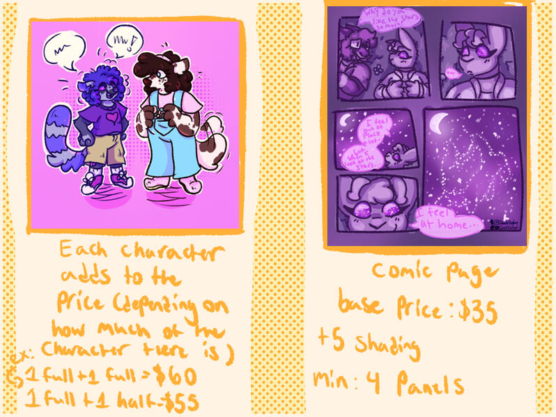 (Ex: a piece with two full body characters is $60, a piece with three full body characters is $90, and so on)Comic Pages