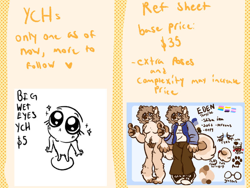 Hello, I'm Eden (depending on where you know me from my user is either CactiCorner or DandyDogboy) Here is all the info you'll need before commissioning me^^ Please read through it all :]Comission Examples